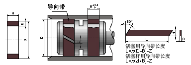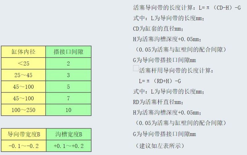導(dǎo)向帶的幾何形狀一般多采用“矩”形扁平帶材.其厚度就根據(jù)活塞或缸體的溝槽深度與缸體與活塞或活塞桿間的配合間隙總和的0.05mm負(fù)公差.即h=H-0.05mm。導(dǎo)向帶的寬度則為溝槽寬度-0.1~0.2mm。導(dǎo)向帶的接口則采用45°或60°的斜搭口為宜。