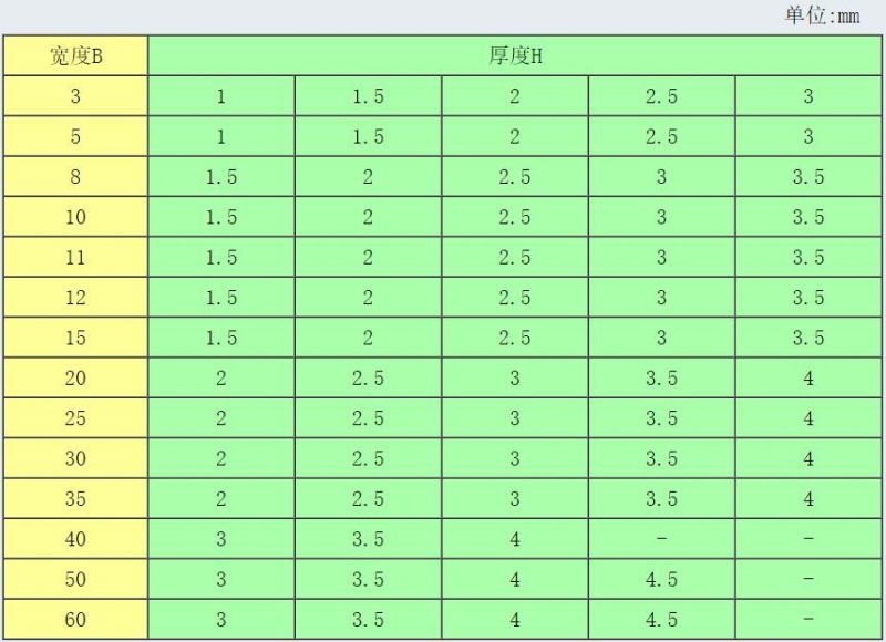 注:本表中未列入的H和B值,可根據(jù)用戶要求加工定做.