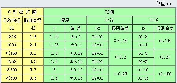 產(chǎn)品用途:本標準適用于油缸壓力大于10MPa 時配合O型圈使用。
